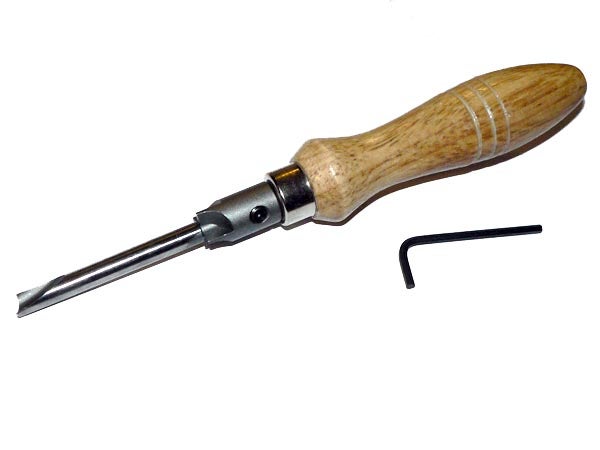 Hyödyllinen apuväline kaikille kynänsorvaajille. Käsikäyttöinen kalvain kynäaihion päädyn tasaamiseen messinkiputkien pituuteen.